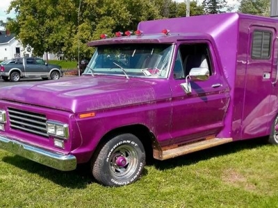 1973 Ford F100 Custom Sleeper Cab Modified 351 Cleveland Ford engine (400 c.i.) with headers, dual stainless steel exhaust. Ford 3 speed C3 automatic transmission. Interior by M and M Custom Upholstery. Front disc/ rear drum power brakes. Many...